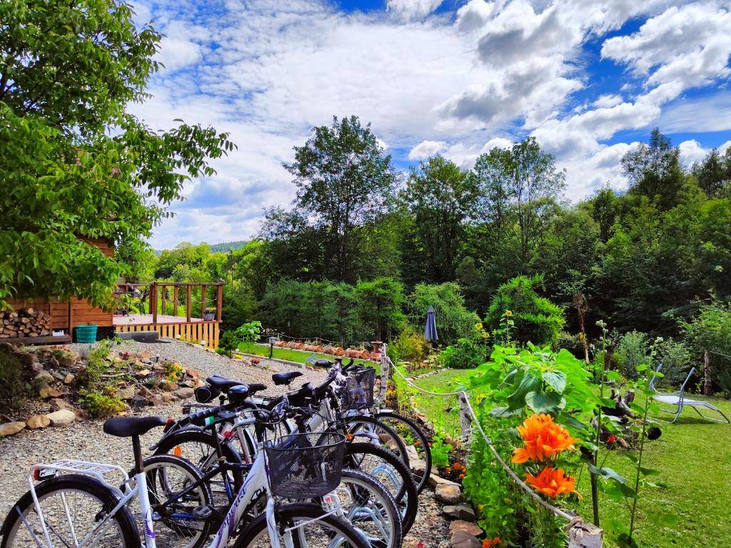 Domki wyposażone są w kuchnię, dzięki czemu Goście mogą samodzielnie przygotowywać posiłki. W pobliżu znajdują się liczne karczmy i restauracje serwujące tradycyjne dania kuchni bieszczadzkiej – pierogi, proziaki, kwaśnicę i lokalne miody. 🥘🍯