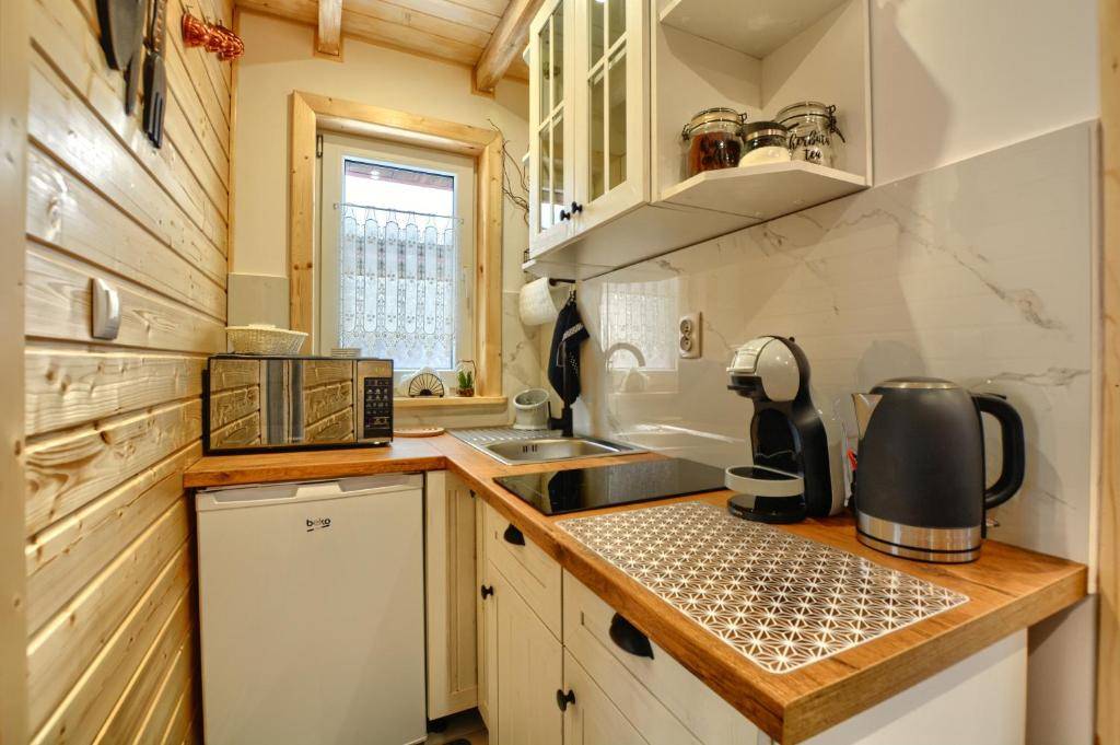 - 🍳 Aneks kuchenny – w pełni wyposażony (płyta indukcyjna, lodówka, mikrofalówka, czajnik, ekspres z kapsułkami, opiekacz, naczynia, przyprawy, kawa i herbata),