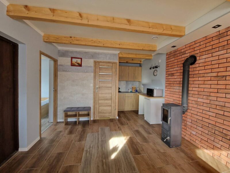 Oferujemy domki, w których zapewnimy Ci komfortowy i niezapomniany pobyt. Nasz Domek 6-osobowy to idealne miejsce na spędzenie czasu w gronie rodziny lub przyjaciół. Za cenę 300 zł za noc zyskasz przestrzeń, w której czeka na Ciebie ciepła atmosfera i możliwość oderwania się od codzienności. Wnętrze chatki urządzone jest z dbałością o detale, abyś czuł się tu jak w domu.