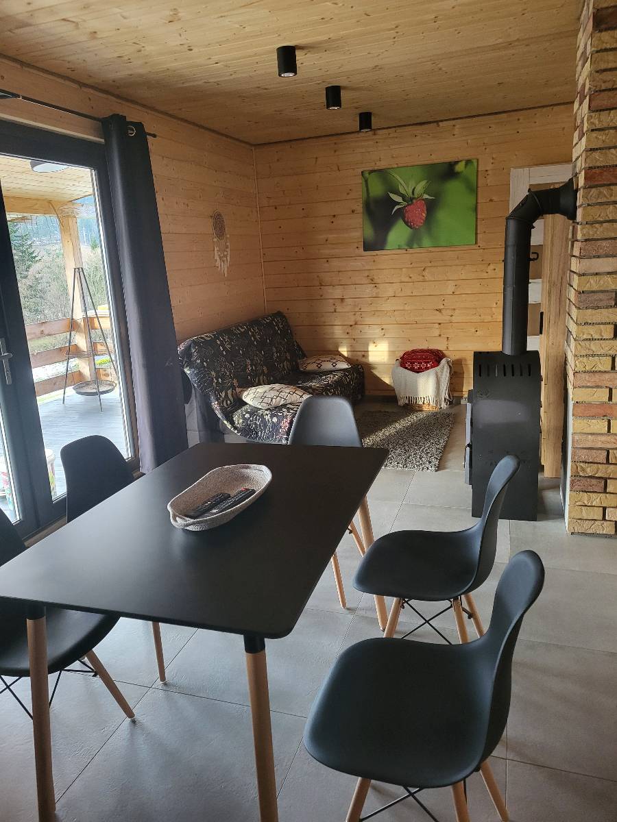 Zapraszamy do naszych urokliwych domków Malina i Jagoda, idealnych dla grupy do 9 osób. Oba domki są uroczo położone, oferując niesamowite widoki na okoliczne krajobrazy. Każdy z nich posiada trzy przytulne sypialnie, gdzie po dniu pełnym wrażeń można znaleźć zasłużony odpoczynek. Nasze kuchnie są wyposażone we wszystko, czego potrzebujesz, aby czuć się jak w domu, a duża łazienka zapewnia wygodę dla wszystkich gości. W salonie znajdziesz wygodną sofę oraz duży stół z krzesłami, idealny na wspólne posiłki i spotkania. Dodatkowy kominek w salonie tworzy przytulną atmosferę, a ogrzewanie podłogowe w łazience i salonie gwarantuje ciepło nawet w chłodniejsze dni. Niezapomniane widoki można również podziwiać z wygodnych łóżek, ponieważ w sypialniach znajdują się grzejniki, które zapewniają przyjemną temperaturę. Wszystko to sprawia, że nasze domki są niezwykle ciepłe, przytulne i komfortowe. A dodatkowo, telewizja smart umożliwia rozrywkę dla każdego gustu. 🌷🌞