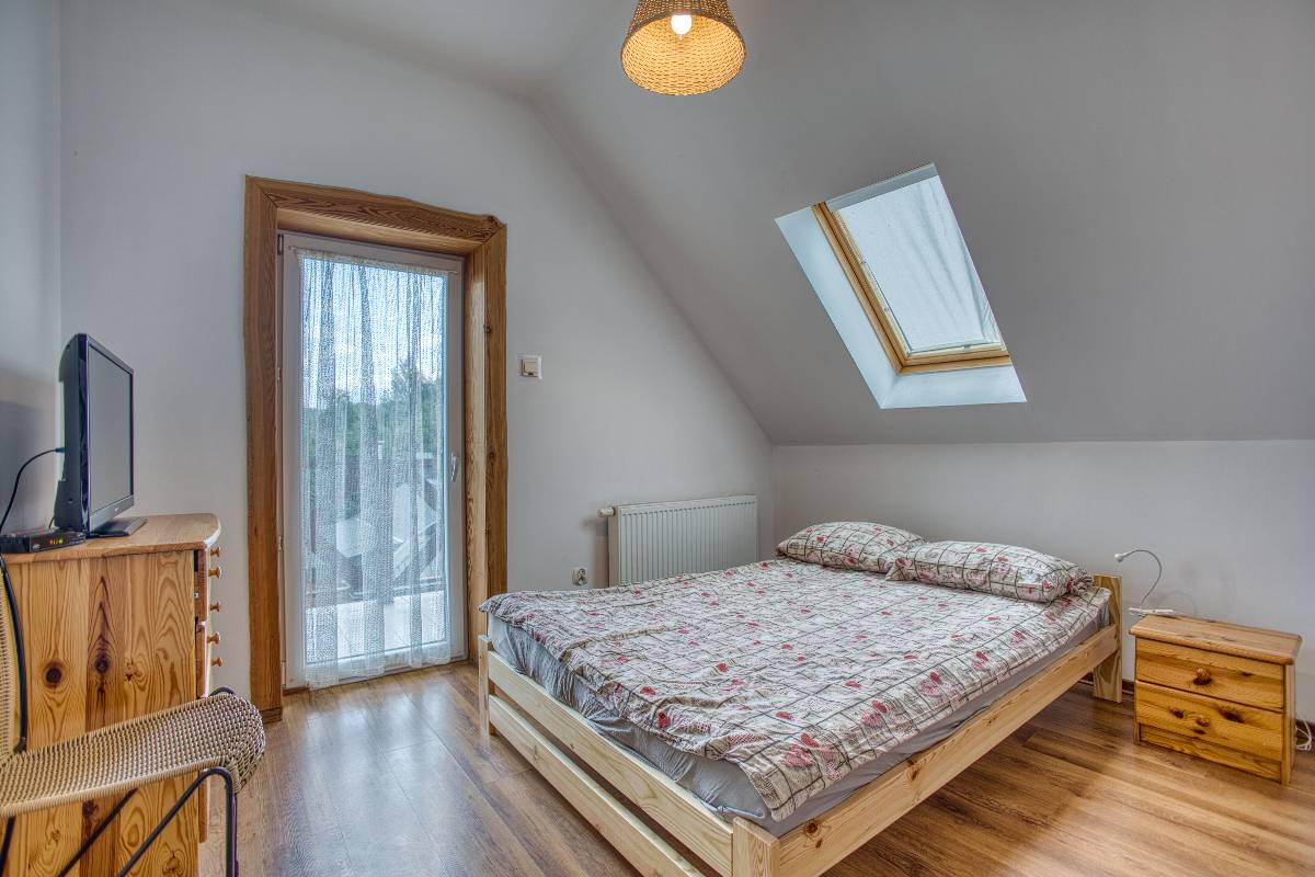 W głównym budynku oferujemy zakwaterowanie dla większych grup – do 12 osób – w klimatycznych pokojach z dostępem do wspólnych przestrzeni: