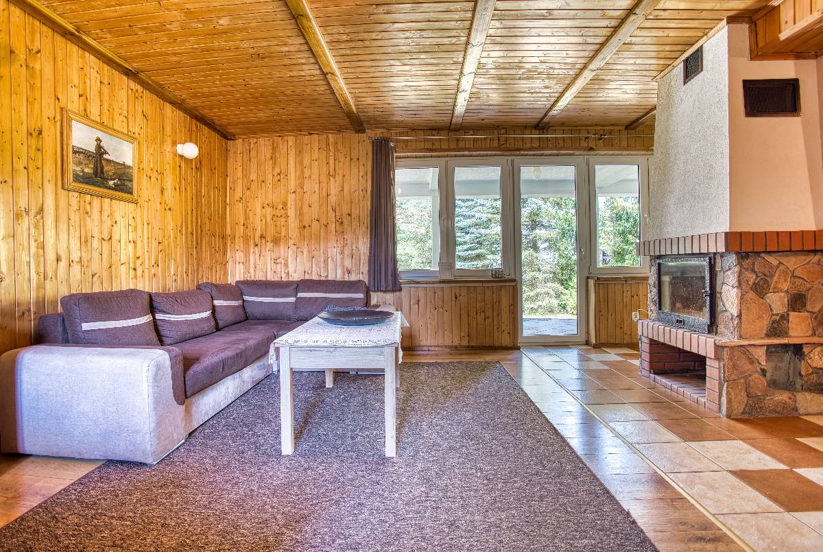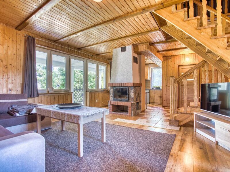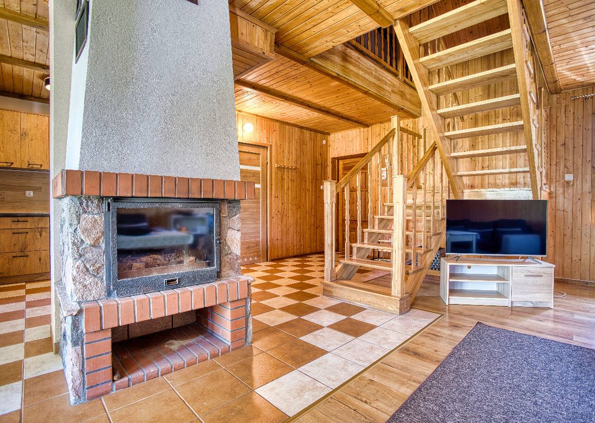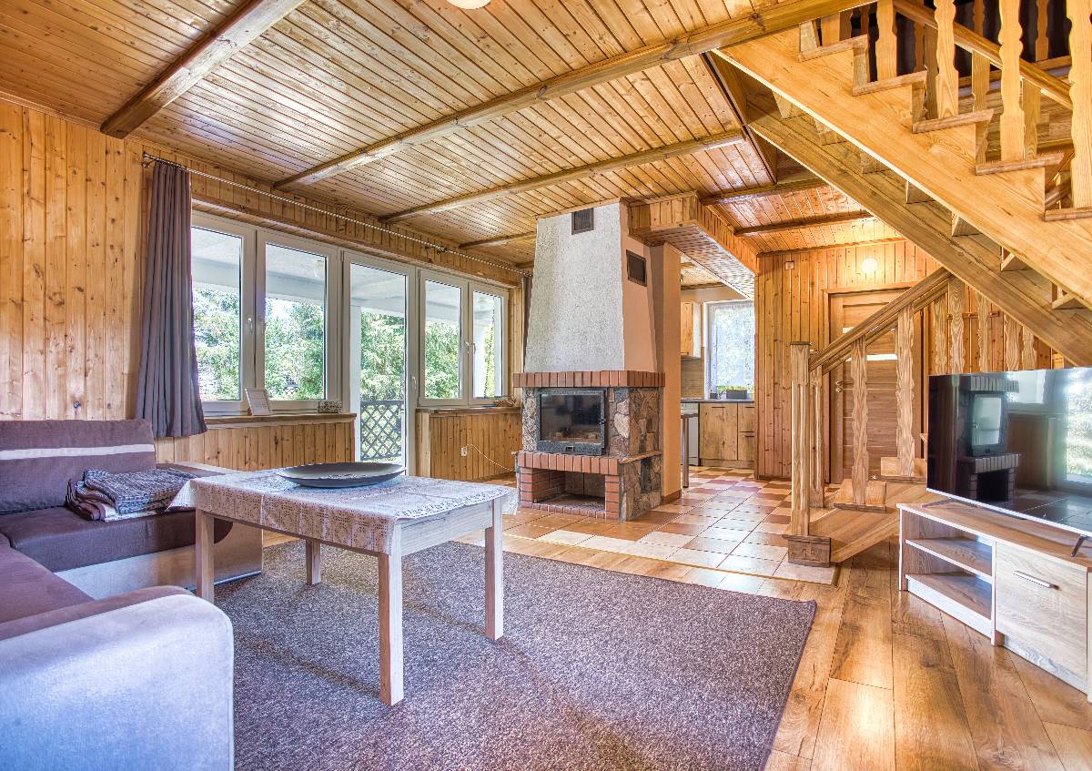 ✔ Salon z kominkiem – idealny na chłodniejsze wieczory, z wygodną sofą i TV 📺🔥