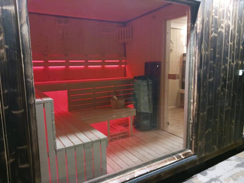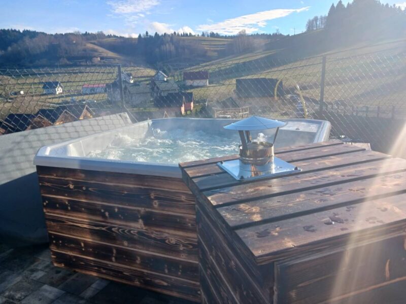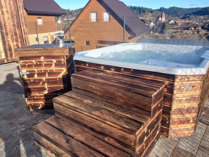 - Zewnętrzna strefa SPA z balią jacuzzi i sauną,