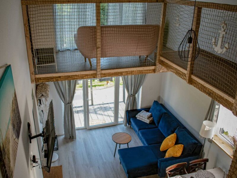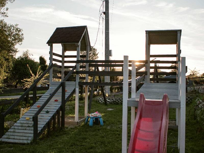 - Komfortowe Domki Letniskowe: Nasze domki zostały stworzone z myślą o Twoim komforcie i wygodzie. Każdy z nich wyposażony jest w aneks kuchenny, dwie sypialnie, salon z rozkładaną sofą oraz łazienkę z prysznicem. Dodatkowo, każdy domek posiada prywatny grill, altanę, hamak oraz plac zabaw dla dzieci.