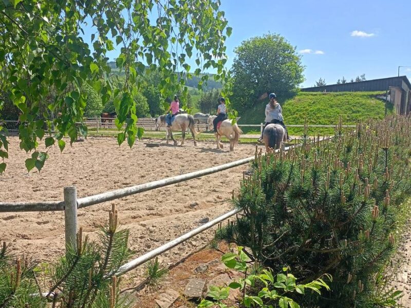 Dodatkowo, nasze udogodnienia obejmują bar-pizzerię działającą w sezonie letnim, komfortowe domki do wynajęcia, saunę oraz balie, które zapewnią relaks po dniu pełnym aktywności. Bez względu na pogodę, nasz kryty lonżownik zawsze jest dostępny dla gości.