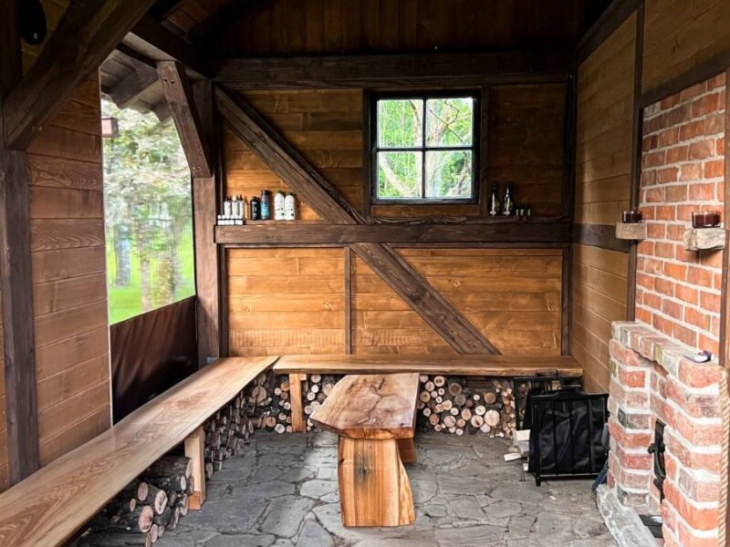 - Wyposażenie: kuchnia, pralka, zmywarka, piecyk drewniany, ogrzewanie gazowe, TV, duży zadaszony taras z grillem.