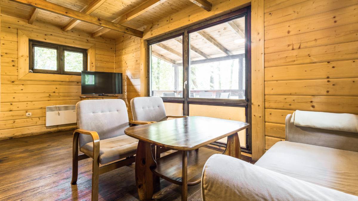 ✔ Wyposażenie domków: TV, czajnik, naczynia i sztućce, lodówka.