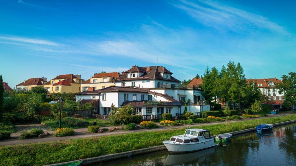 Pensjonat Nautic w Węgorzewie to wyjątkowe miejsce, gdzie komfort, lokalna historia i bliskość natury łączą się w jedną spójną całość. Położony nad rzeką Węgorapą, tuż obok średniowiecznego zamku krzyżackiego, stanowi idealną bazę wypadową dla turystów pragnących odkryć uroki Szlaku Wielkich Jezior Mazurskich. 🚤