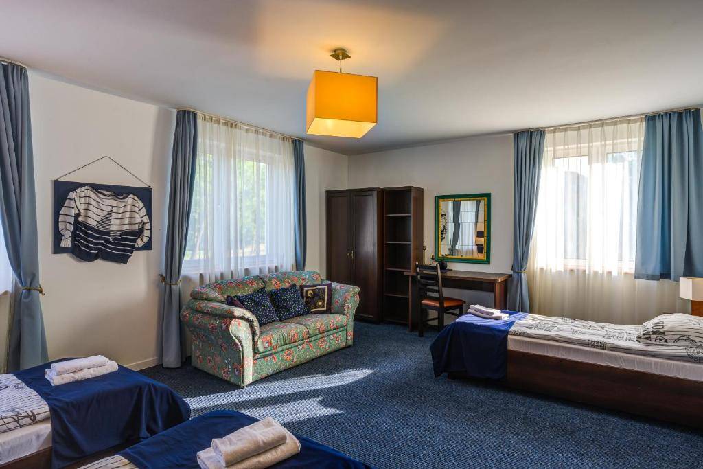 - 🏠 Pokoje 2-, 3- i 4-osobowe – z prywatnymi łazienkami, czajnikiem, TV i dostępem do WiFi,