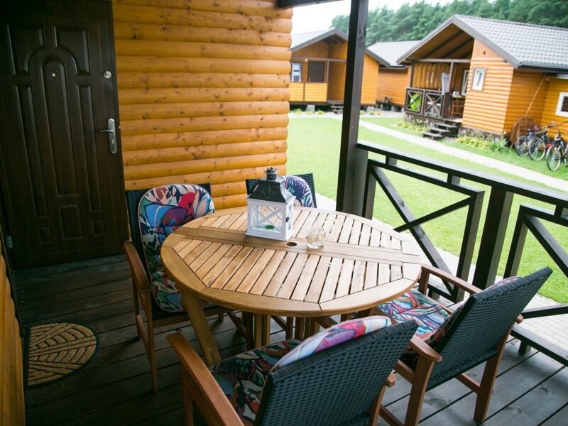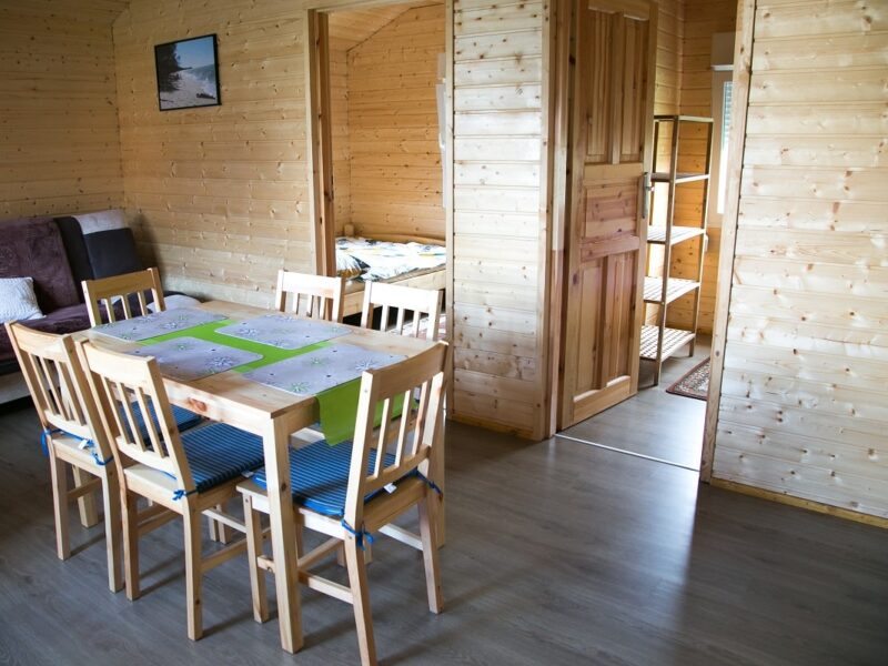 Do dyspozycji naszych gości oddajemy 8 nowoczesnych domków, wykonanych z wysokiej jakości drewna, każdy o powierzchni 45 m². Każdy domek składa się z: