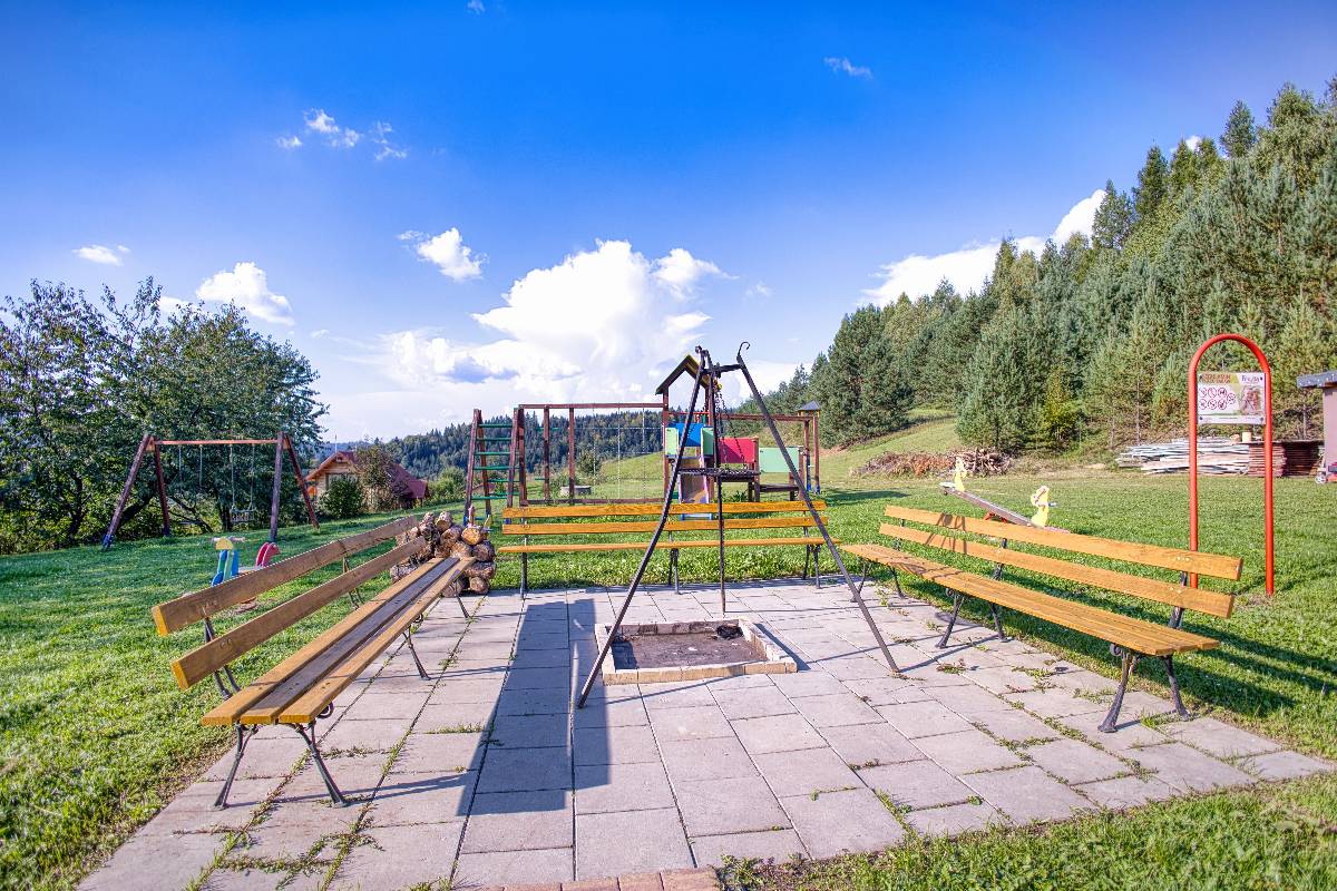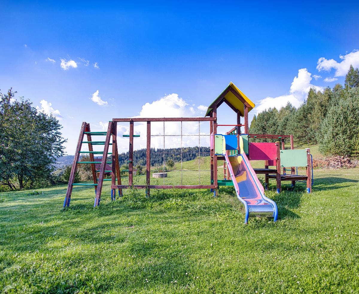 - 👧 Plac zabaw – huśtawki, zjeżdżalnie i mnóstwo przestrzeni do zabawy dla najmłodszych.
