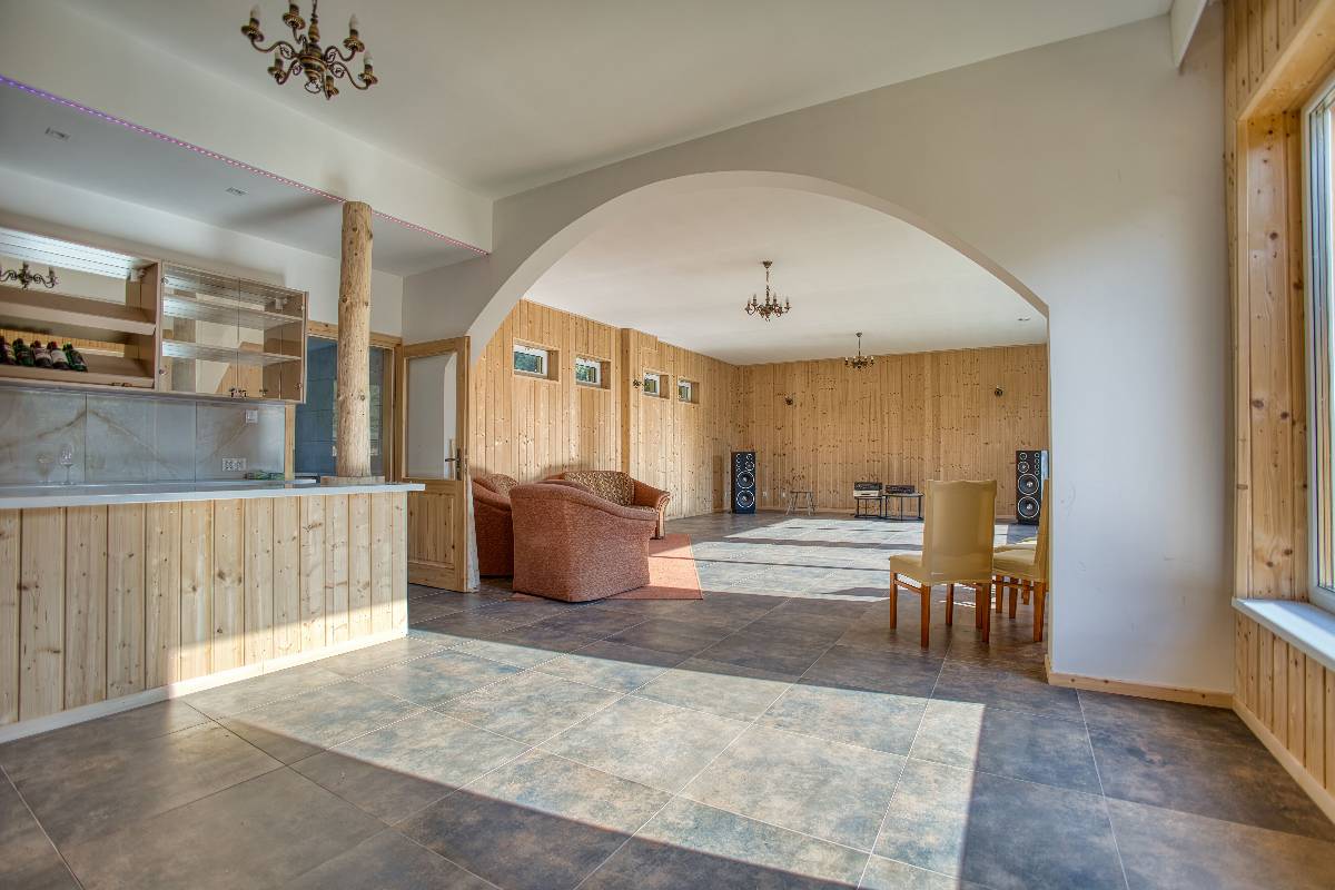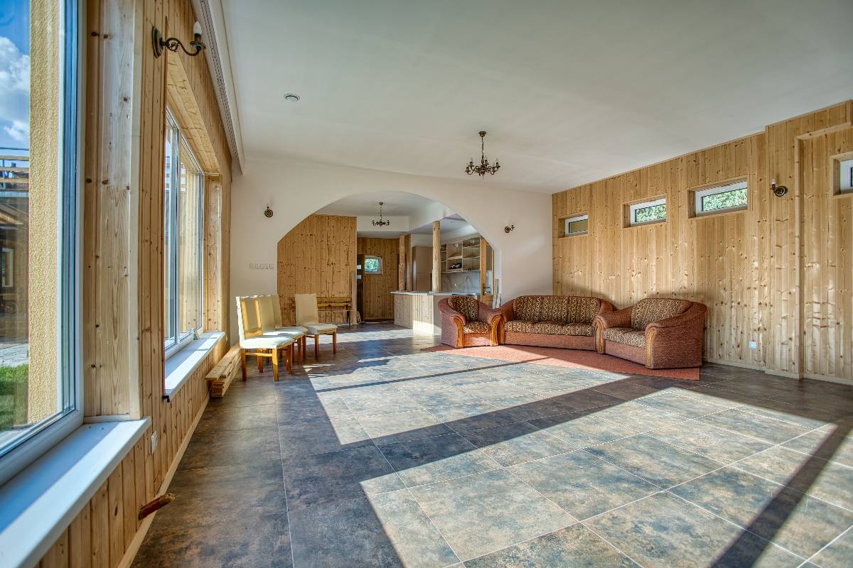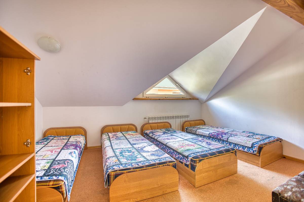 - 🌄 Przestronny dom całoroczny – z 5 pokojami (2×2-os., 1×3-os., 2×4-os.), dwoma łazienkami i salonem dla 15 osób.
