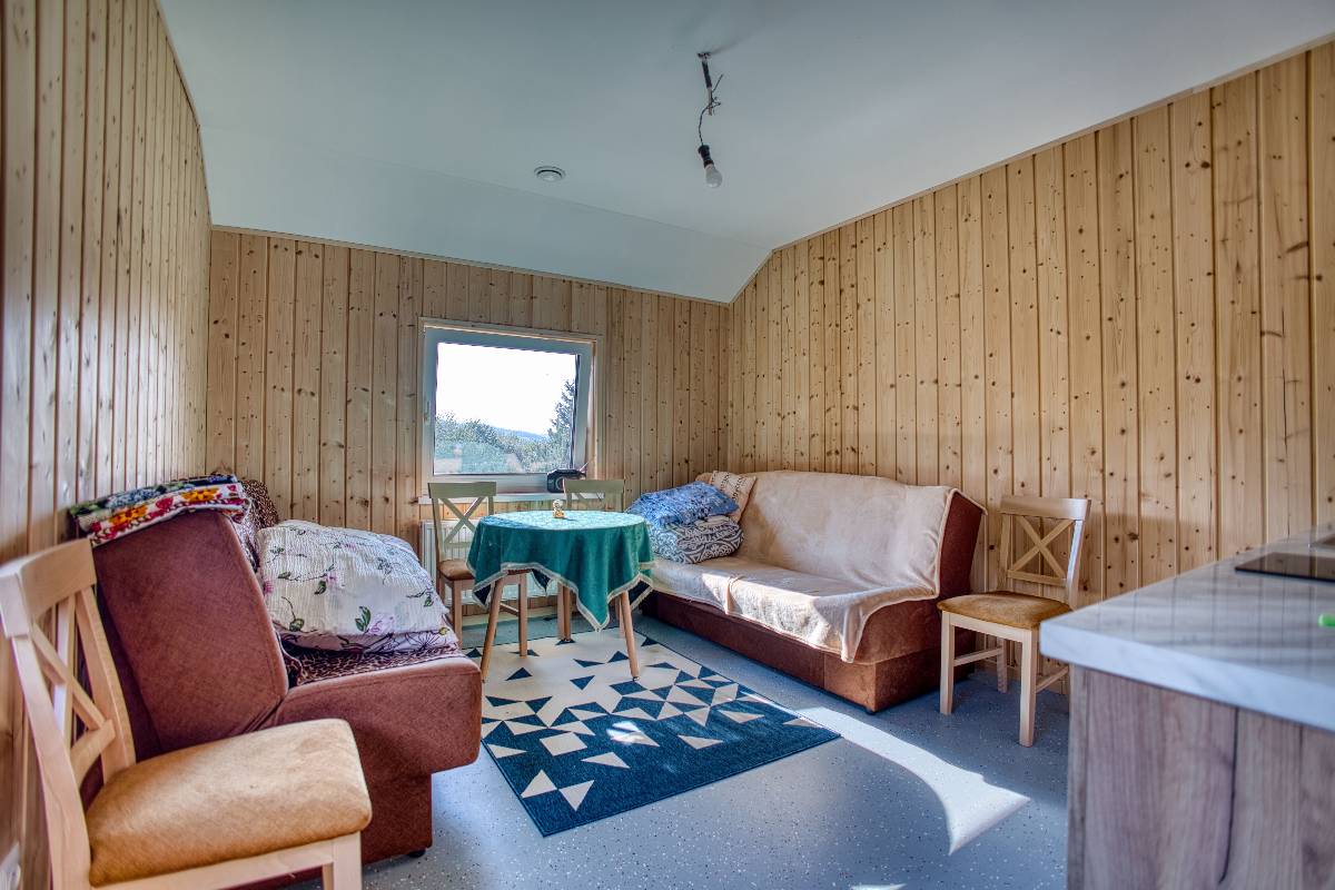 - 🏡 Dwa komfortowe domki – każdy z salonem, kuchnią, łazienką i dwiema sypialniami, przeznaczony dla 8 osób.