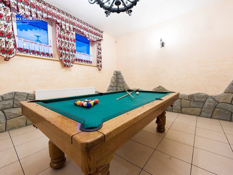 - 🎯 Sala rozrywki z bilardem, piłkarzykami i kominkiem,