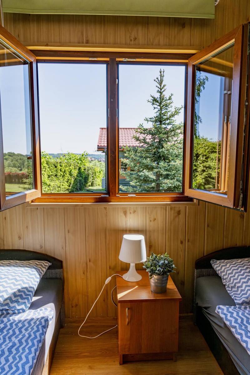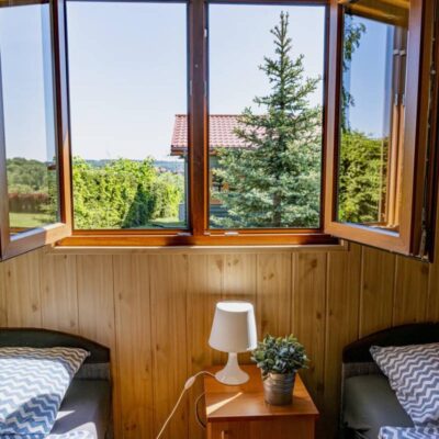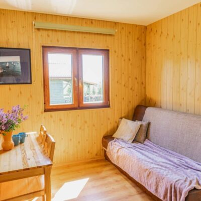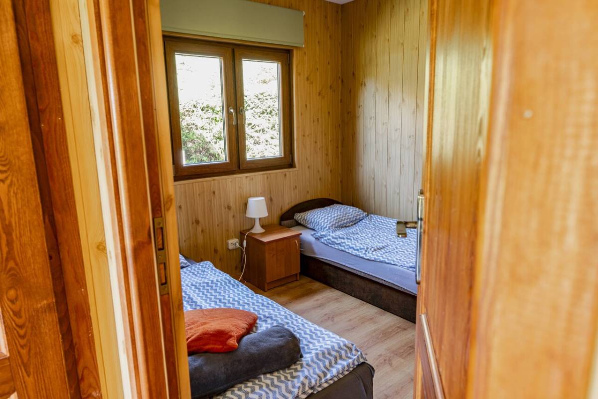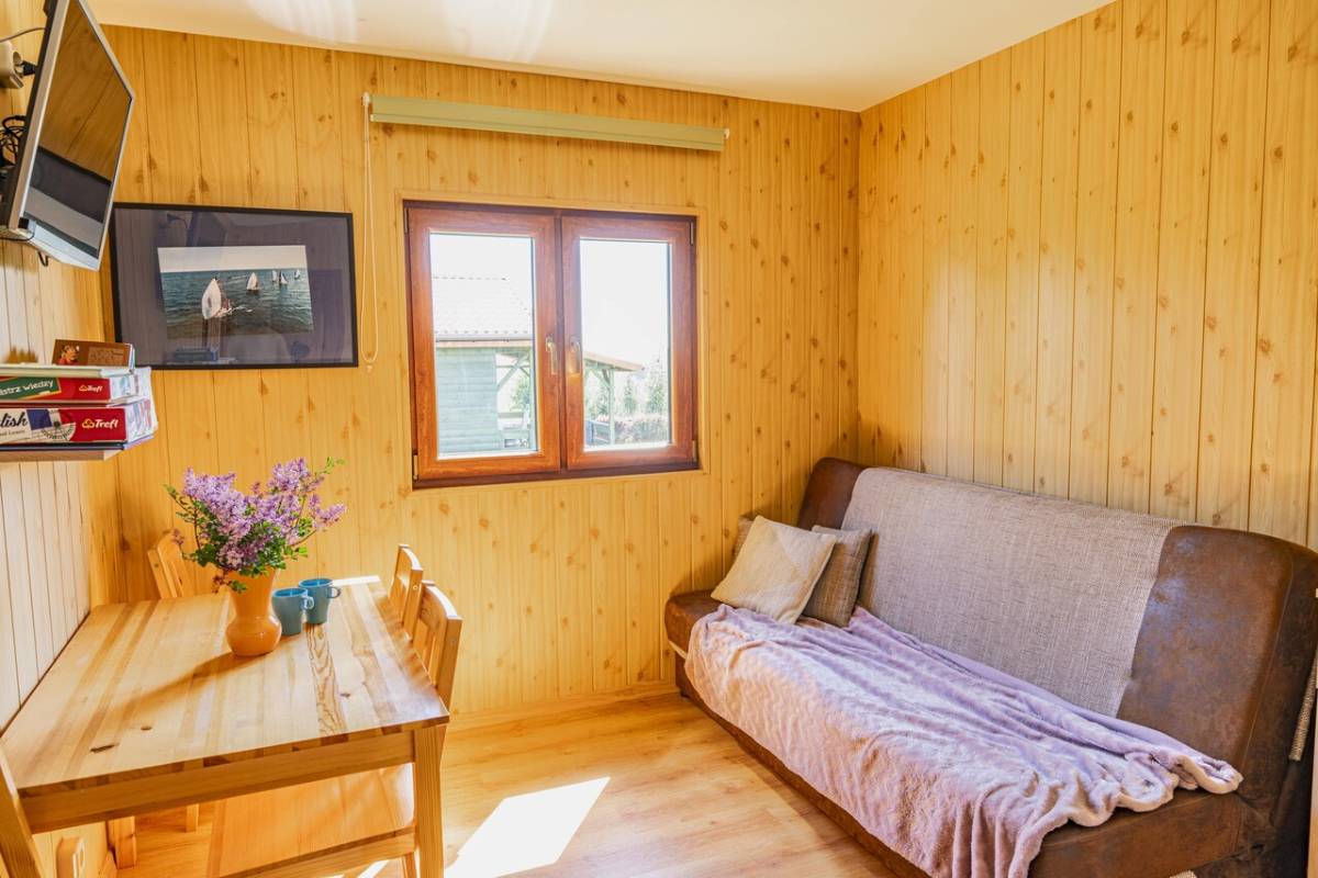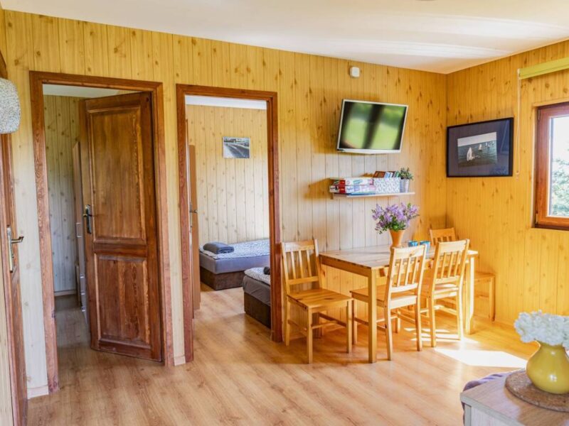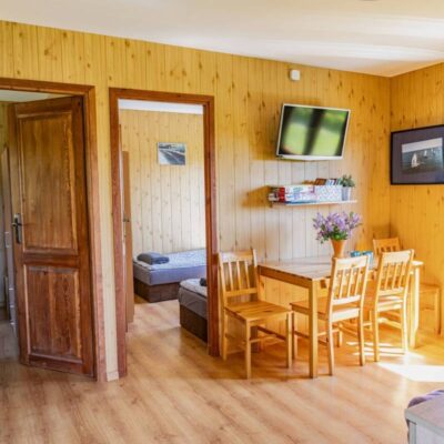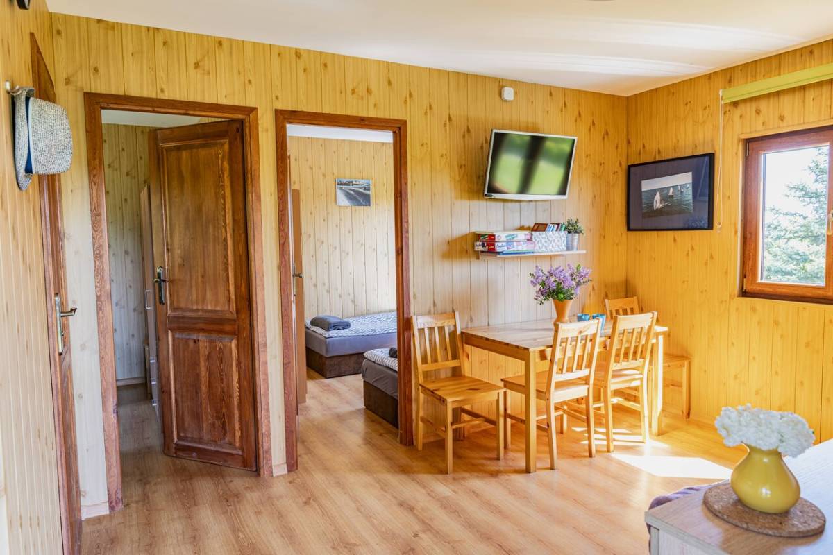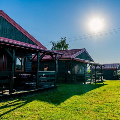 Oferujemy trzy nowoczesne, drewniane domki o powierzchni 35 m², które zapewniają wygodny wypoczynek dla maksymalnie 6 osób. Każdy domek został wyposażony w: