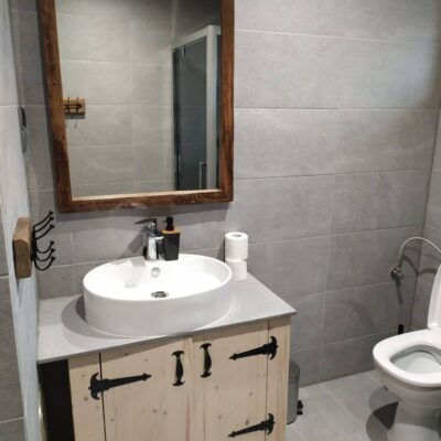 - Na parterze: Otwarta przestrzeń z salonem i kominkiem, idealna do wieczornego relaksu, w pełni wyposażona kuchnia do przygotowywania ulubionych posiłków, łazienka, oraz zadaszony taras, gdzie można delektować się poranną kawą w otoczeniu natury.