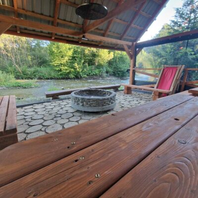 ✔ Bliskość natury – zejście nad rzekę z miejscem na ognisko i leżaki,