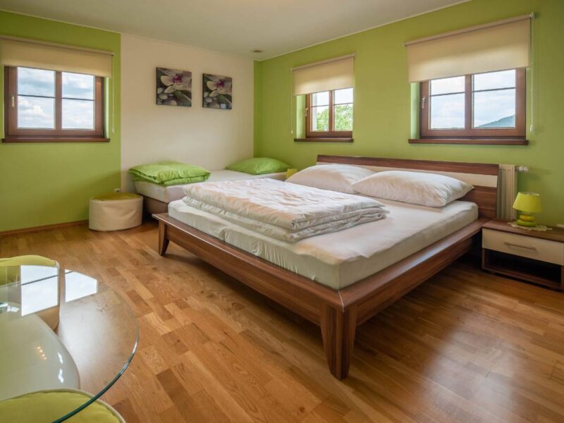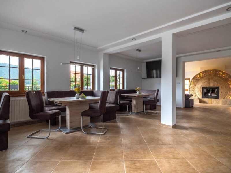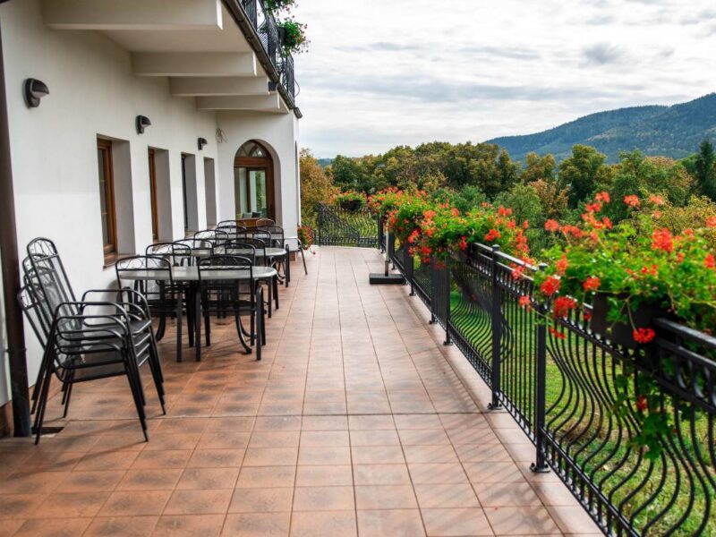 - Komfortowe Noclegi: Dysponujemy 20 miejscami noclegowymi w pełni wyposażonych pokojach o różnorodnych aranżacjach kolorystycznych. Każdy pokój posiada łazienkę oraz dostęp do tarasu z widokiem na góry.