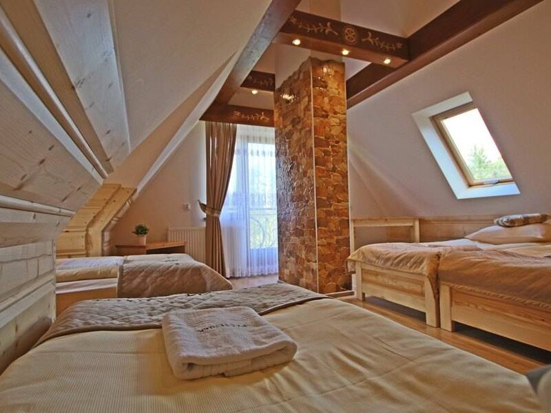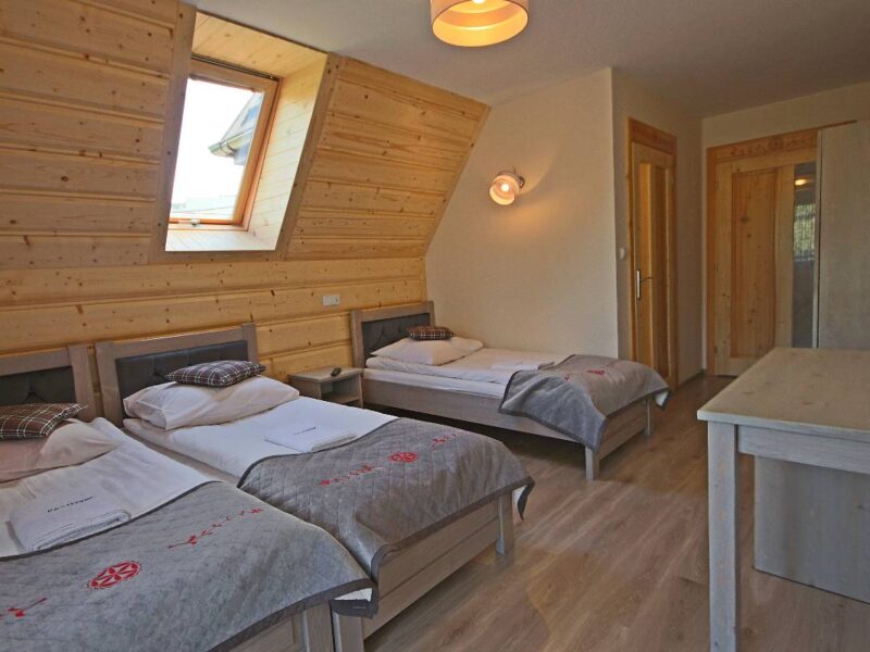Do dyspozycji naszych gości oddajemy pokoje 2, 3 i 4-osobowe, każdy z własną łazienką, telewizorem i dostępem do Wi-Fi. Pokoje są urządzone w nowoczesnym stylu góralskim, który łączy tradycję z komfortem. Standard pokoi jest porównywalny z hotelowym, co gwarantuje najwyższy poziom komfortu podczas pobytu.