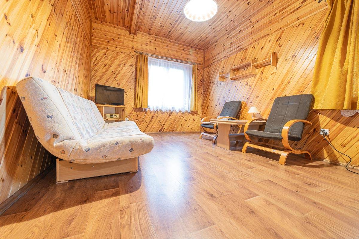 Domki letniskowe składają się z pokoju dziennego, sypialni, łazienki oraz kuchni. Wyposażone są w telewizor, radio, lodówkę, czajnik i podstawowy sprzęt kuchenny, co pozwala na swobodny, niezależny pobyt blisko natury.