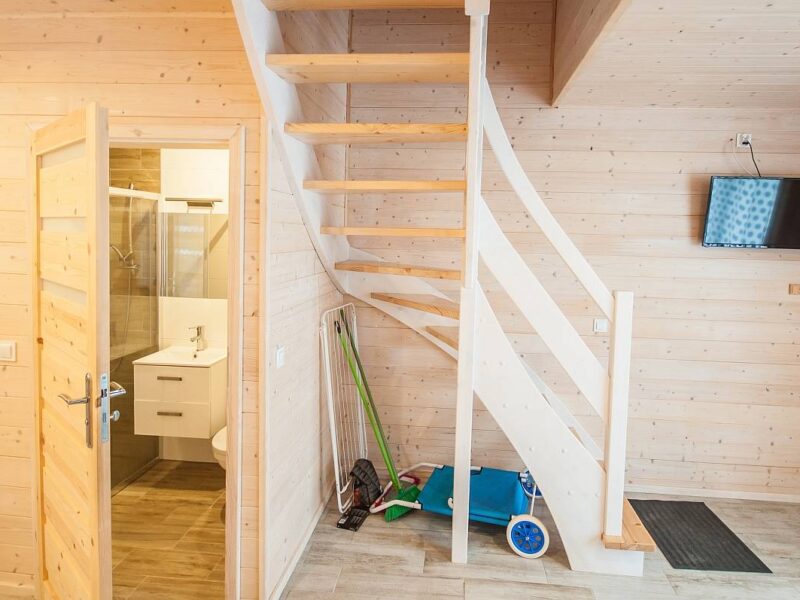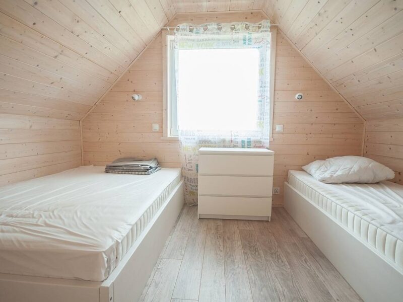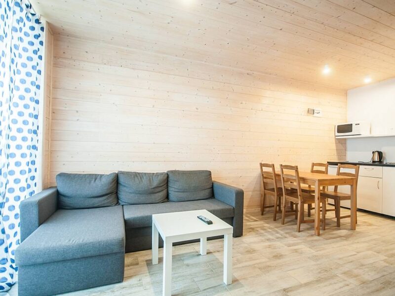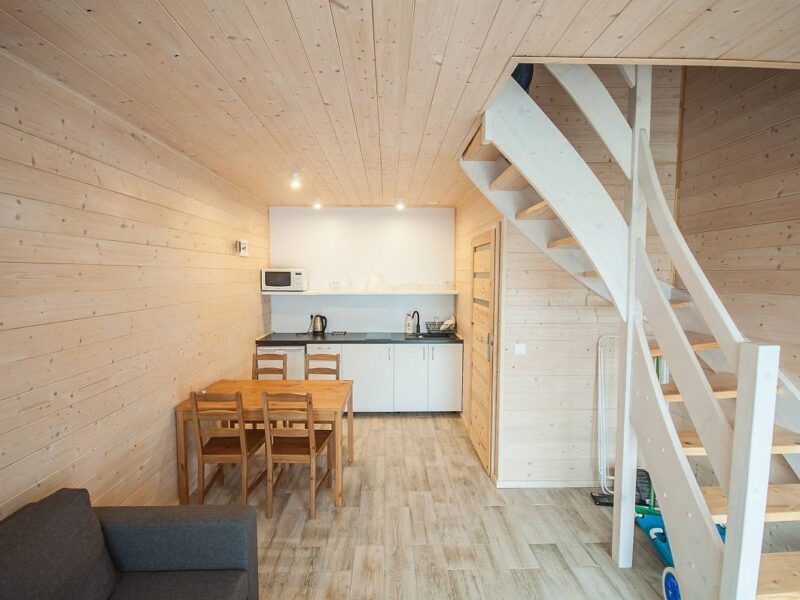 🔹 Domki przeznaczone są dla 6 osób, jednak istnieje możliwość zakwaterowania dodatkowych dwóch osób na rozkładanej kanapie (dopłata 30 zł/os./dobę).