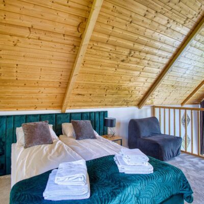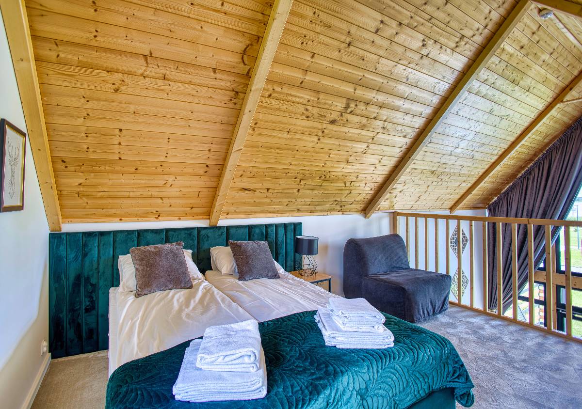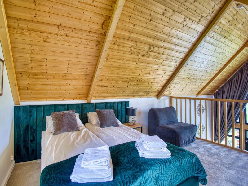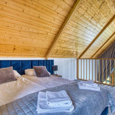 🛏 Antresola: Duże łóżko małżeńskie lub dwa pojedyncze łóżka.