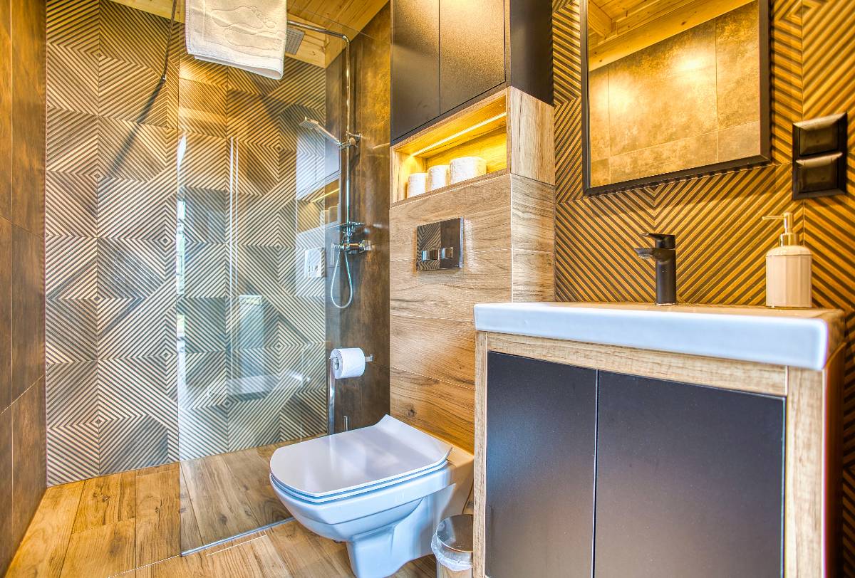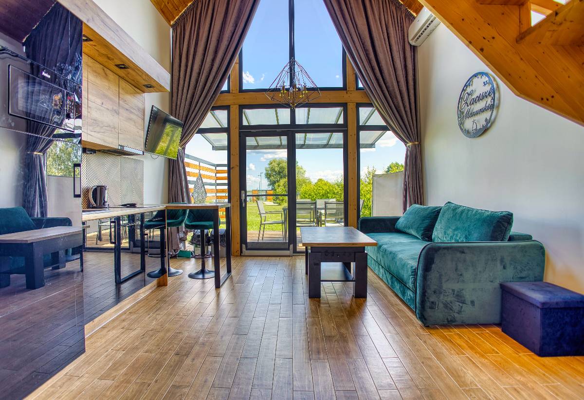 🛋 Parter: Przestronny salon z rozkładaną sofą dla dwóch osób, w pełni wyposażona kuchnia, łazienka z prysznicem.