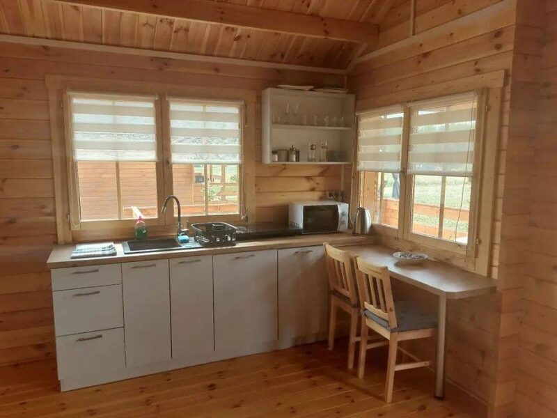Oferujemy trzy nowoczesne domki, które pomieszczą od 4 do 6 osób. Każdy domek jest klimatyzowany i ogrzewany, co zapewnia komfort o każdej porze roku.