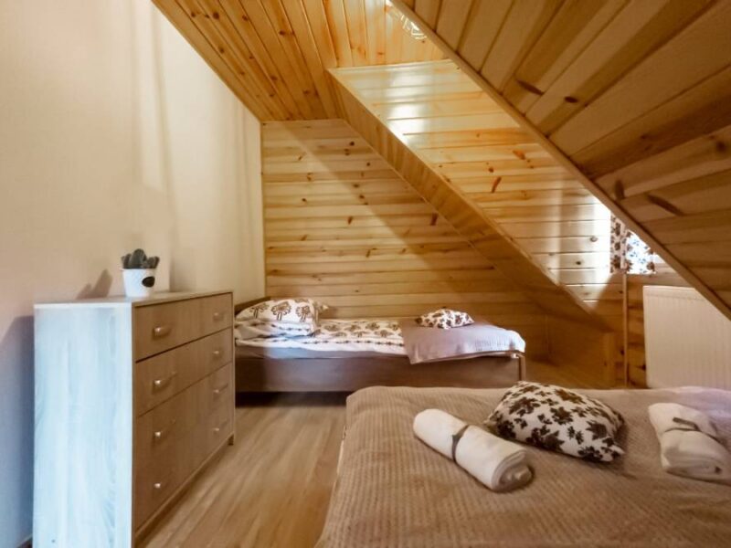 Domek może pomieścić do 9 osób i został wyposażony tak, aby zapewnić maksimum wygody i relaksu: